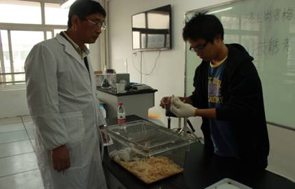 此次结业考试分为理论考核和技能考核两部分,理论考试于2012年10月22日下午3:00在第一教学楼进行,参加报名考证的考生都做好了充足的准备,对于理论考试表现的信心十足,并且从容淡定的完成了理论考试。技能考核于2012年10月23日下午3:00在动科实验实训楼进行,邀请了校内外的实验动物专家进行了监考和评审,考试内容包括灌胃、皮下注射、保定性别判定、腹腔注射等等,考生们娴熟的进行着每一步操作,监考老师们认真仔细的观看考生们的操作,整个技能考核过程进行的有条不紊。
