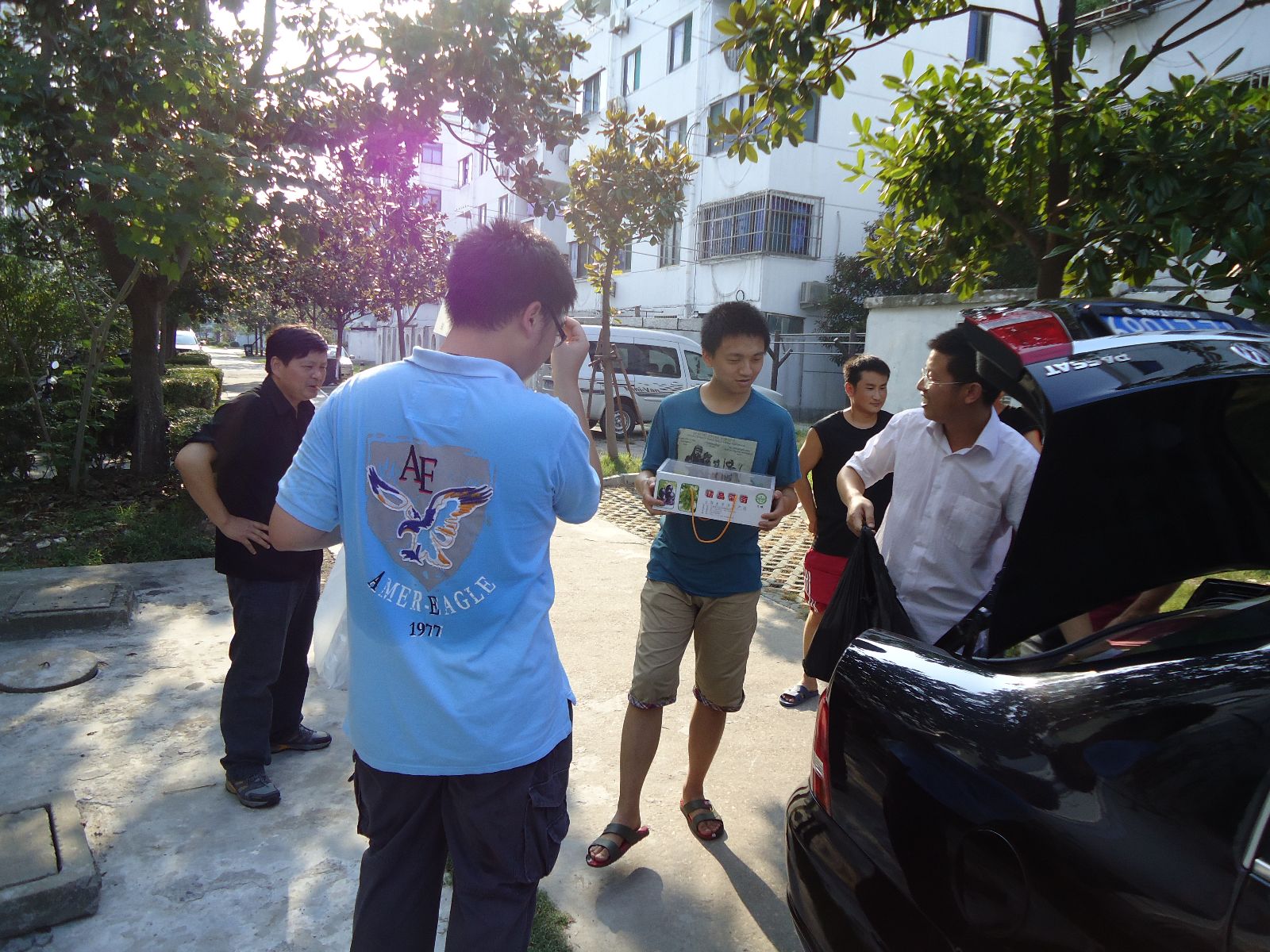 图4 老师向学生们发放慰问品