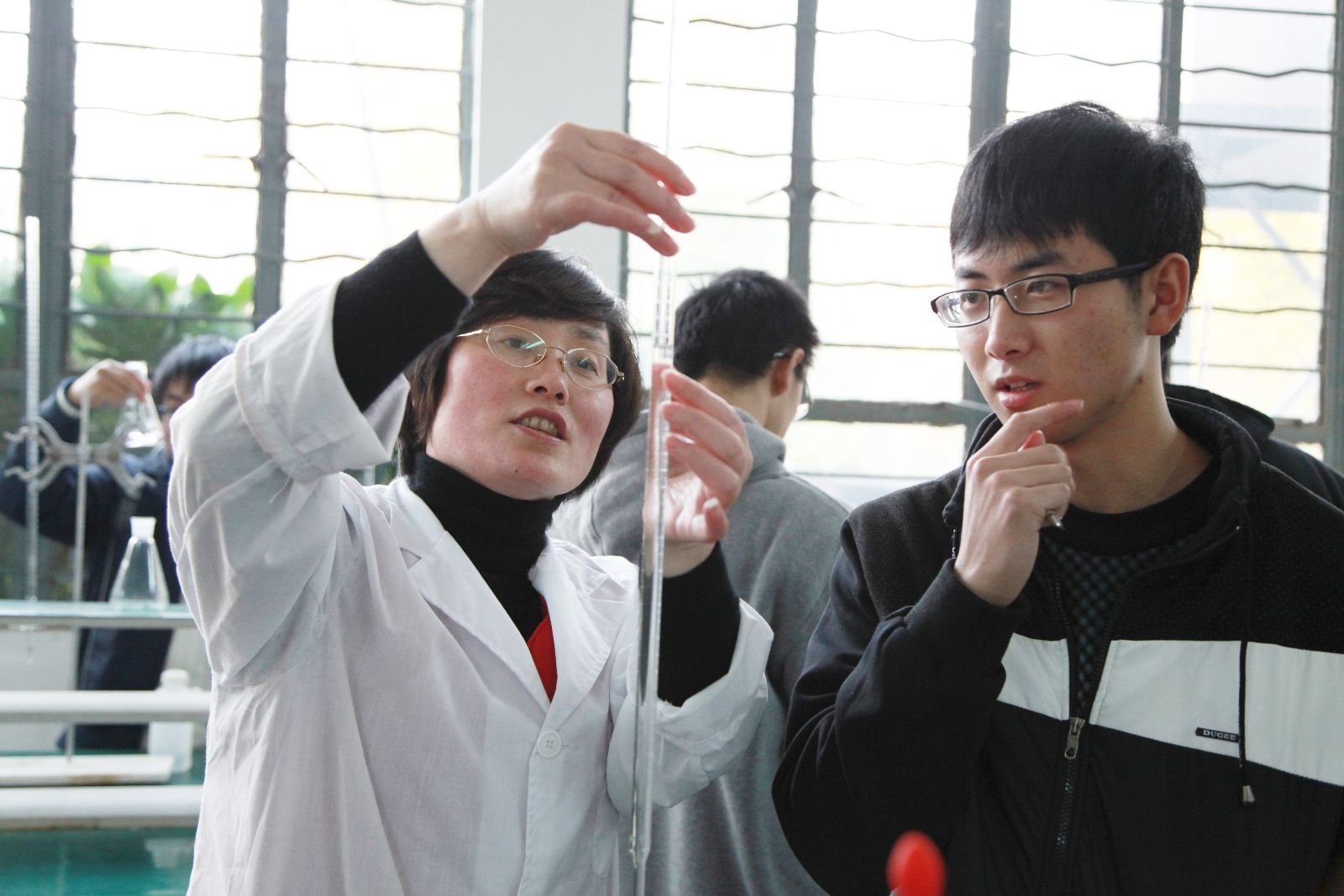 严格是常态。就像记者走进基础化学实验室看到的,化学老师陈蕾正在手把手地教学生准确拿滴定管并正确读数。看到学生在分析天平前拿着称量瓶,她就不停叮嘱,“称量瓶离开桌面就不能再放回,一直到称量结束。”“小心在锥形瓶口正上方轻敲,再在瓶口正上方回敲,盖上!”虽然这几年学生的情况变化很快,不少学生还是文科生,学习化学等理工科相当困难,但是第一学年里基础课程的老师一直保持一贯的态度,这为学生后期的学习以及专业课程的教学培养了相对稳定的实验习惯。此诚非易事。