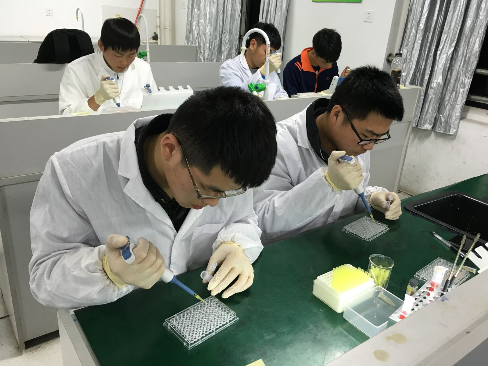 本项目自2016年2月份本着学生自愿的原则,开展了组织报名工作,最终有12名学生报名参加。系里高度重视本赛项的学生选拔与培训工作,成立了由系主任顾剑新担任组长,杜波、滑志民、王金福、战晓燕、钟登科、曹彩琴、陈红等老师及行业专家担任成员的工作小组,全面负责技能大赛参赛人员的培训、选拔及比赛等事宜。选拔赛分为初赛、复赛、决赛三个阶段,通过初赛遴选出8名选手参加复赛,复赛阶段还将为每位选手确定指导教师,根据选手初赛阶段的不足开展集中培训,并通过复赛选拔出4名选手进行强化训练,最后通过决赛选拔出2名选手参加第二届全国农业职业院校职业技能大赛《鸡新城疫抗体水平测定》竞赛项目。
