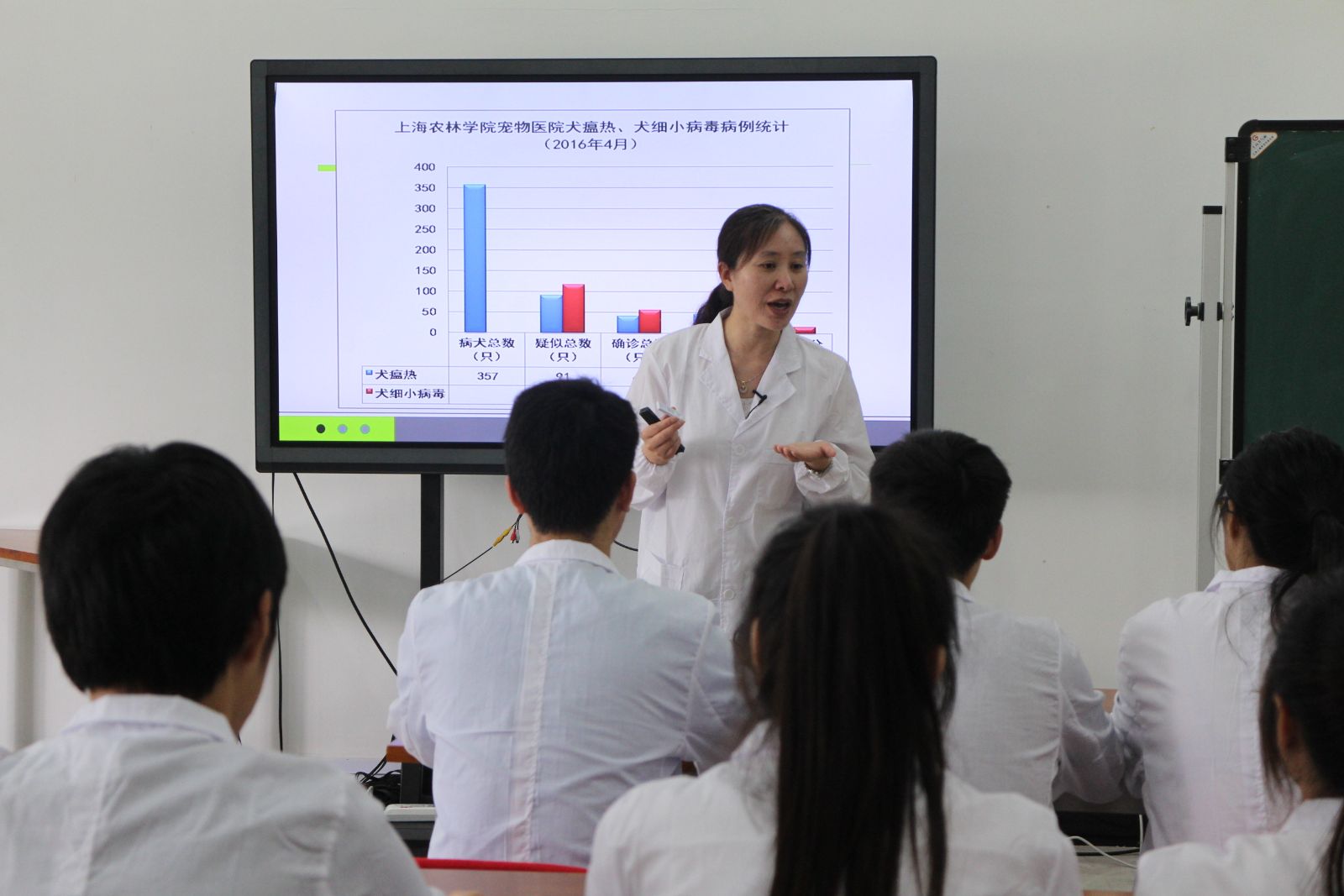 比赛由随堂听课、参赛课说课两个环节组成。战晓燕老师的参赛课是动医131班《动物疫病》课程中的实训课——《犬瘟热、犬细小病毒的检测》,参赛课时为2学时。在课堂教学中,战晓燕基于课程、结合学情,巧妙的运用任务驱动、角色扮演、小组合作等多种教学方法,突出教学重点、化解教学难点,关注学生的学习过程,并强调学生职业技能与职业素养。整个教学过程,她讲解清晰正确、操作科学规范,教态亲切自然,师生互动多样,展现了较强的课堂组织能力,教学效果较好。课后,她对参赛课的教学设计进行了说课,评委专家对上课和说课情况进行了提问和交流。