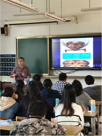 讲座现场成教授生动的讲解虾蟹类知识