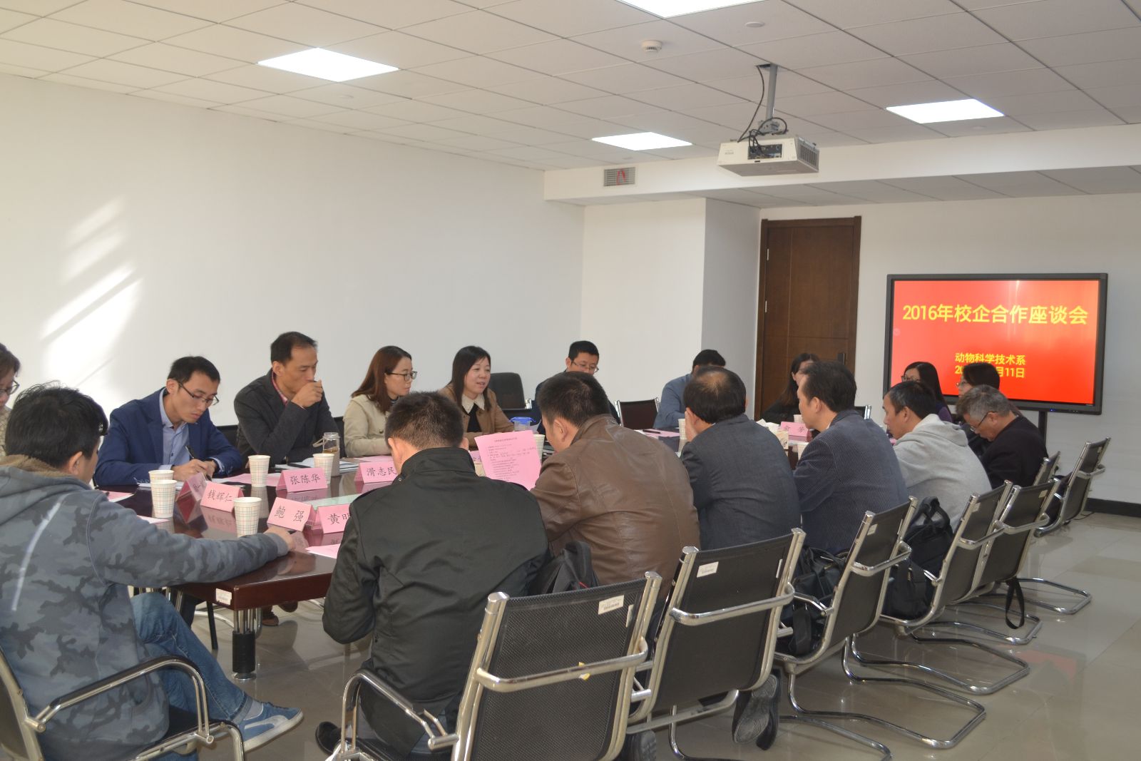 为了解动科系学生实训实习及就业情况,继续深化互利共赢的校企合作机制,实现校企协同育人的目标。11月11日上午,动科系在综合楼803召开2016年校企合作座谈会,13名企业领导和行业专家应邀到校出席。动科系主任郑江平、校企合作办公室副主任宋英常、动科系党支部书记杜波、动科系副主任滑志民、系部专业教师及全体辅导员共同参与了本次交流座谈会,会议由杜波主持。