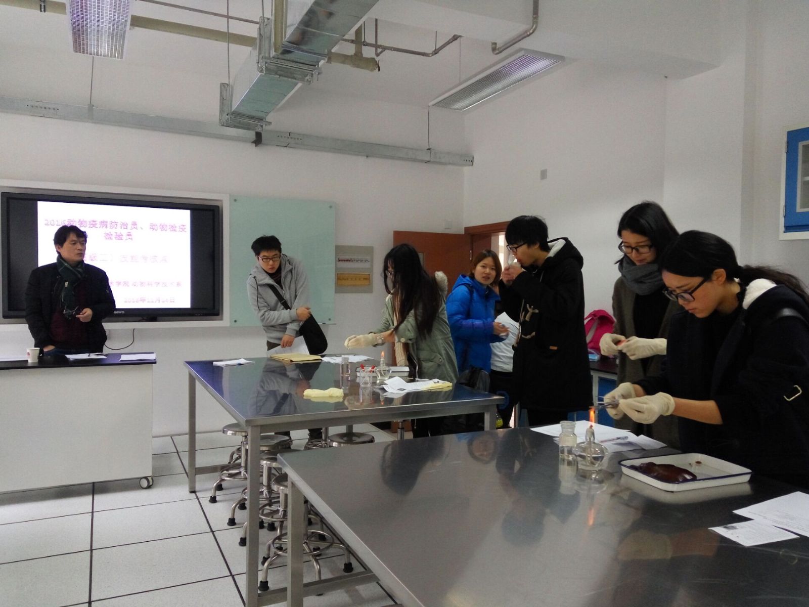为使学生对所学的专业知识进行梳理和巩固,提高学生的专业技能水平,提升学生的求职竞争力。12月24日,动科系开展了动物疫病防治员和动物检验检疫员职业技能鉴定考核工作,动科系2012级、2014级共60余名学生参加了此次技能鉴定。