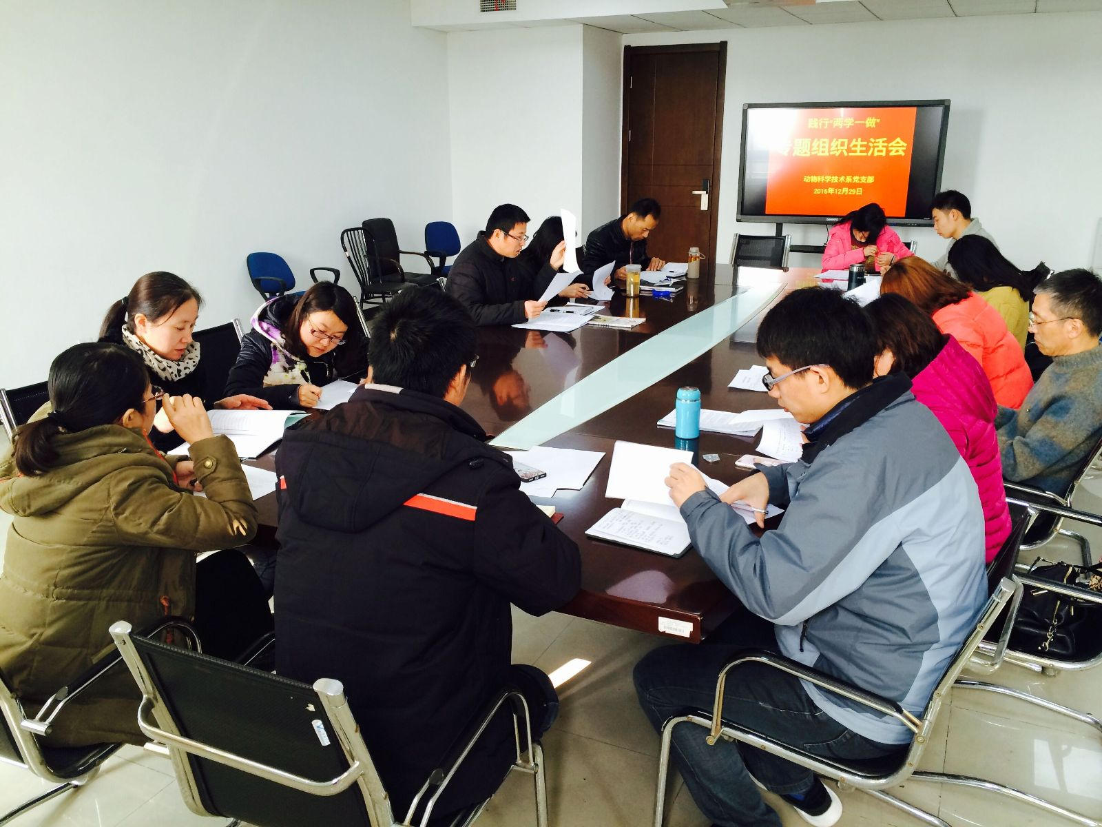 2016年12月29日中午,动科系党支部在综合楼807室召开支部会议,集中全体教师党员深入学习了习近平总书记在全国高校思想政治工作会议上的讲话精神,会议由党支部书记杜波主持。
