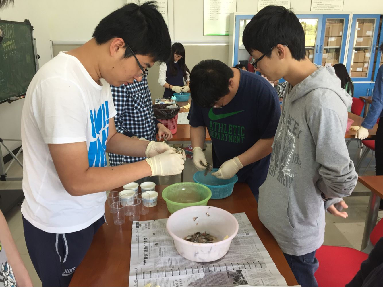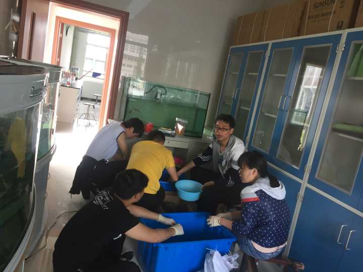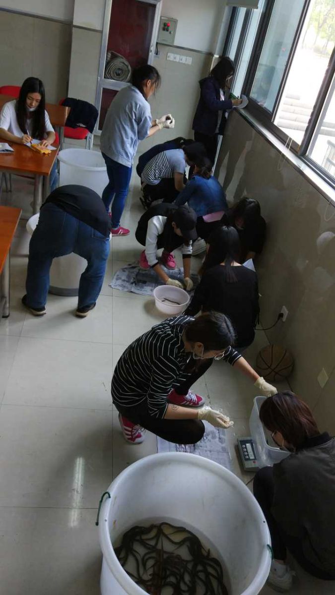 5月18日上午水生植物采集完后,同学们考虑到气温升高可能会引起网箱水质容易变坏,对网箱泼洒了益生细菌进行维护。考虑到黄鳝驯化期不吃配合饲料,师生们安排一个下午的时间,为它们精心制作了用自养的蚯蚓加鱼肉混合而成营养大餐。一天的任务结束后,指导教师郭印对一天的工作进行了总结,表扬了同学们的作业态度和精神,也针对一些同学的不良习惯也提出了批评,并借事育人开展了一堂细节决定成败的德育课,希望让同学们明白一个不经意的行为也是你个人素质的体现,现在养成一个好习惯以后能成就一个大未来,以后自己也会因此受益。