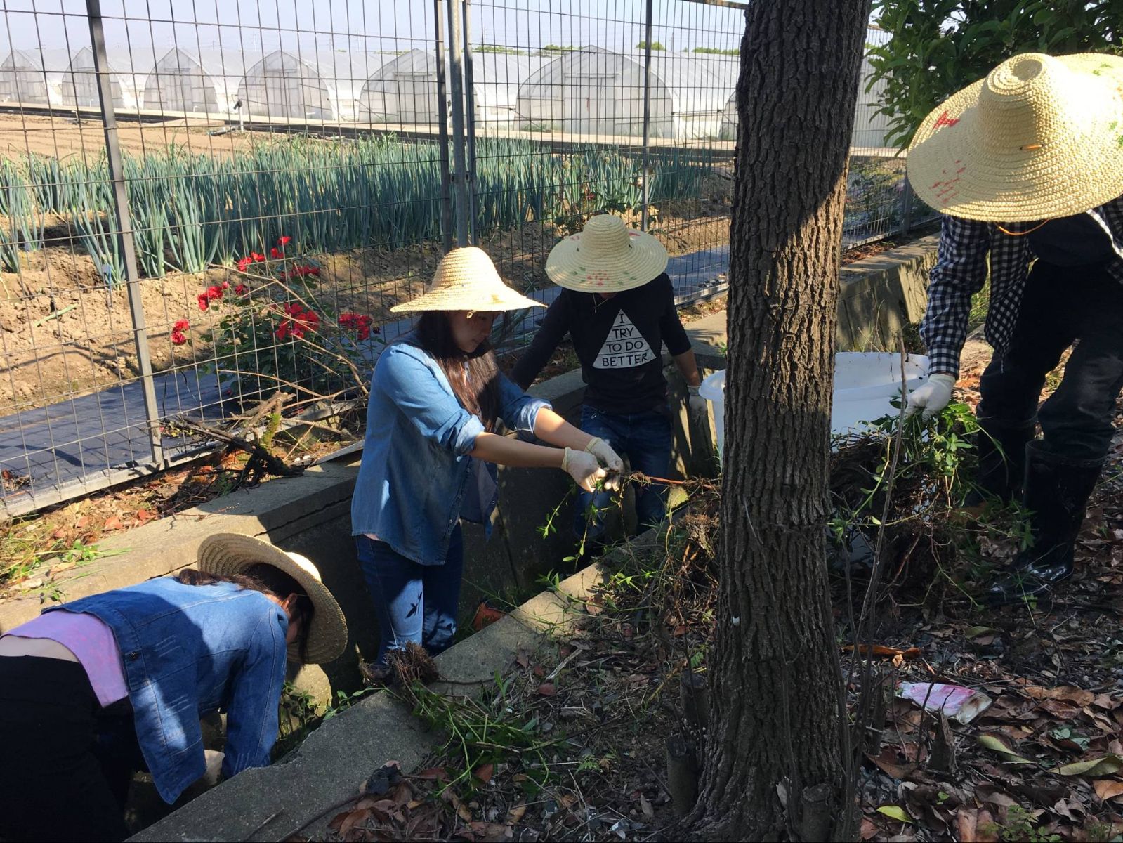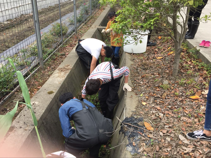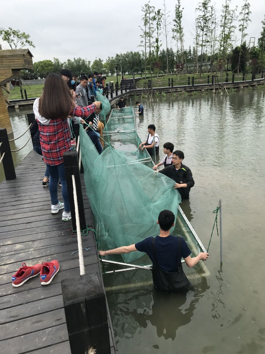 首先同学们根据课堂专业知识,查阅资料,进行了养殖黄鳝知识储备,这一过程培养了同学们积极主动的学习态度。池塘消毒待水位达到要求后,我们开始展开工作。第一步的主要工作包括网箱消毒与固定和植物采集两部分内容。采用自愿结合的方式,老师适当调整男女比例,学生分为四组实训。班里一名同学在平时上课过程中不爱听讲,许多同学担心他会影响本组的整体得分,以至于没人愿意和他一组,这时老师出面与该名同学以及各组协商,约定在以后操作中好好表现,而该同学在之后的表现中一直非常积极,老师也觉得很受感动。工作开始后同学们讨论商定网箱放置方案,有人认为使用石头放置在网箱四角的方式来使箱体下沉,有人则认为应放置泥土,这样还有利于黄鳝钻泥的习性。最终老师根据讨论结果统一意见。大家在讨论过程中发散了思维,交换了想法,对于一些知识点留下了深刻的印象。在采集水花生的过程中,学生们充分发扬了不怕脏不怕苦的精神,在污泥中先清除带刺的枯枝后,在对植物进行采集。水产151何结祥表示,以往对水花生、水葫芦等的印象都停留在课本的插图上,脑子里始终是一个模糊的印象,今天见到真实的植物,对于以后辨识和使用自己也很信心了。