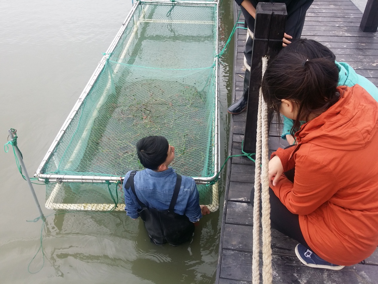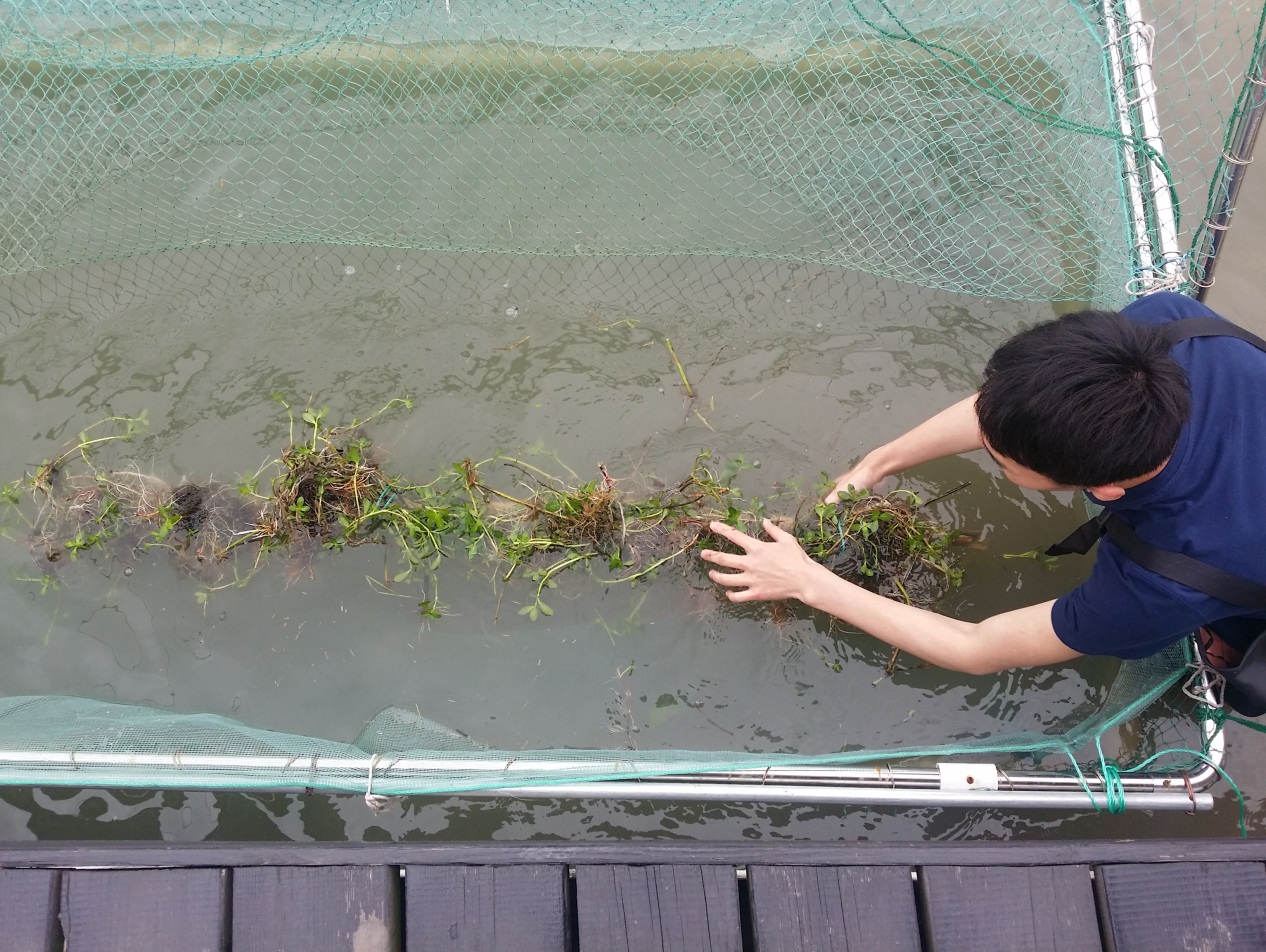 图5 网箱栽种水花生