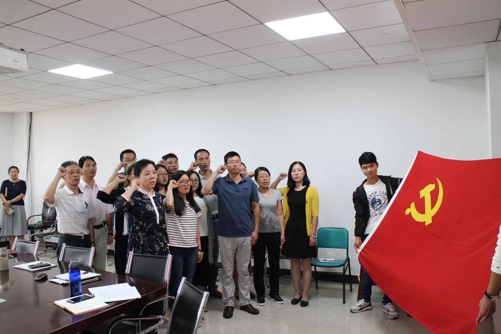 会后,全体党员在党旗下庄严宣誓,重温入党誓词,不忘初心,坚定信念,砥砺前行。