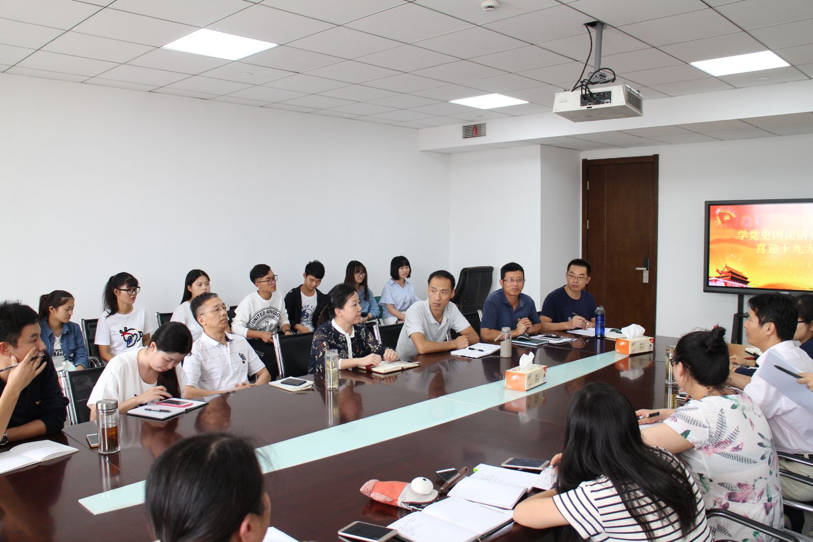 9月22日,动科系党支部在综合楼807组织召开“学党史国情话变化,喜迎党的十九大”主题党日活动,系部全体党员教师、党支部结对团支部及党员结对困难学生代表参加了此次会议,会议由党支部书记杜波主持。