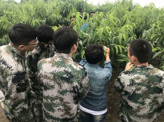 《安全教育与实践》课程中,同学们了解了灭火器的种类、构造以及使用方法,参观了消防士兵生活内寝,了解了消防车上一些重要装备。尽管天气炎热,但在教官的耐心细致的讲解和标准精细的操作中,同学们都看的十分仔细,听的十分认真。通过课程学习,不仅提高了同学们的安全防范意识,而且更加近距离的感受和体会到了军人严明的纪律和严谨的工作作风。晚上,同学们还在基地温室大棚了进行了《安全法制讲座》。讲座中,警官独特的思维方式和生动形象的例子引起了同学们对于身边安全法治相关问题的关注。讲座后,同学们表示要遵守法律,争做新时代的好青年。《餐巾折花》、《压花工艺》、《创意园景》实践课程让同学们的想象力和动手操作能力都得到了一定的锻炼和提高,同时,也深深体会到只要怀着一颗充满好奇和探索的心,用心观察,动手实践,美可以创造,美无处不在。《中华传统民俗专题活动》和《蛋挞制作》实践课程中,在学习水饺与蛋挞这两种中西方传统美食制作及两种食品给予同学们味蕾享受的同时,也增强了同学们对于中西饮食文化的体验与认识。《基地生产实践》课程安排了果园套袋,在指导老师的带领下,同学们来到了基地的桃园里,在经过老师对于果园套袋的原理、目的和操作要点的详细讲解后。同学们分好小组,拿着纸袋小心翼翼的把纸袋套上。在桃园里,同学们闻着泥土的气息,阳光穿透桃叶泻在一张张充满快乐的脸上,亲身体验农事生产的快乐。《农业物联网认知体验》课程中,老师用了两节课的时间,给我们讲了互联网加农业的相关技术发展,重点讲述了五厍基地的农业互联网技术,展示了水塘,和果园的农业互联网技术。理论课结束后,同学们在老师的带领下还实地参观了水塘,育苗基地,实现了理论与实践的完美结合。通过该课程学习,让同学们体会到了现代农业的科技感,增进了同学们对现代农业的认识,刷新了同学们对农业的认知。对于动科系学生来说,《犬临床一般检查》是同学们最熟悉和最富专业情感的课程。课上,专业老师除详细讲解了犬类的体温、心率等一般生理指标的检查方法外,还安排了同学们在室外体验刷马和洗羊等实践项目,专业课程的体验让同学们意犹未尽。除了丰富多彩的实践项目,每天晚自修基地还会给同学们安排关于现代农业前沿问题的讲座或团日活动。本学期第13周适逢国际志愿者日,动科系团总支的同学们结合专业特点,利用晚自修时间开展了一场题为“志愿服务,从心开始——尽我所能保护野生动物”的团学主题活动,使同学们在活动中认识野生动物,并逐步意识到保护野生动物的重要性。在基地的每天都很充实多彩,时间也转眼逝去,很快,为期五天短暂而充实的学农与创新创业实践活动在同学们的依依惜别中顺利结束。