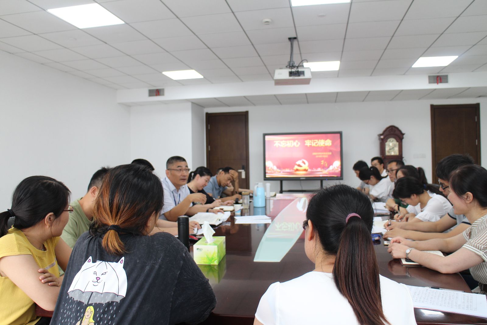 会议观看了党的十九大开幕会片段,重温中国共产党人为人民谋幸福、为民族谋复兴的初心使命。党员教师纷纷发言谈自己入党的初心、教师党员的使命,表示要树立立德树人的信念,服务学生、服务学院发展、服务党的教育事业。