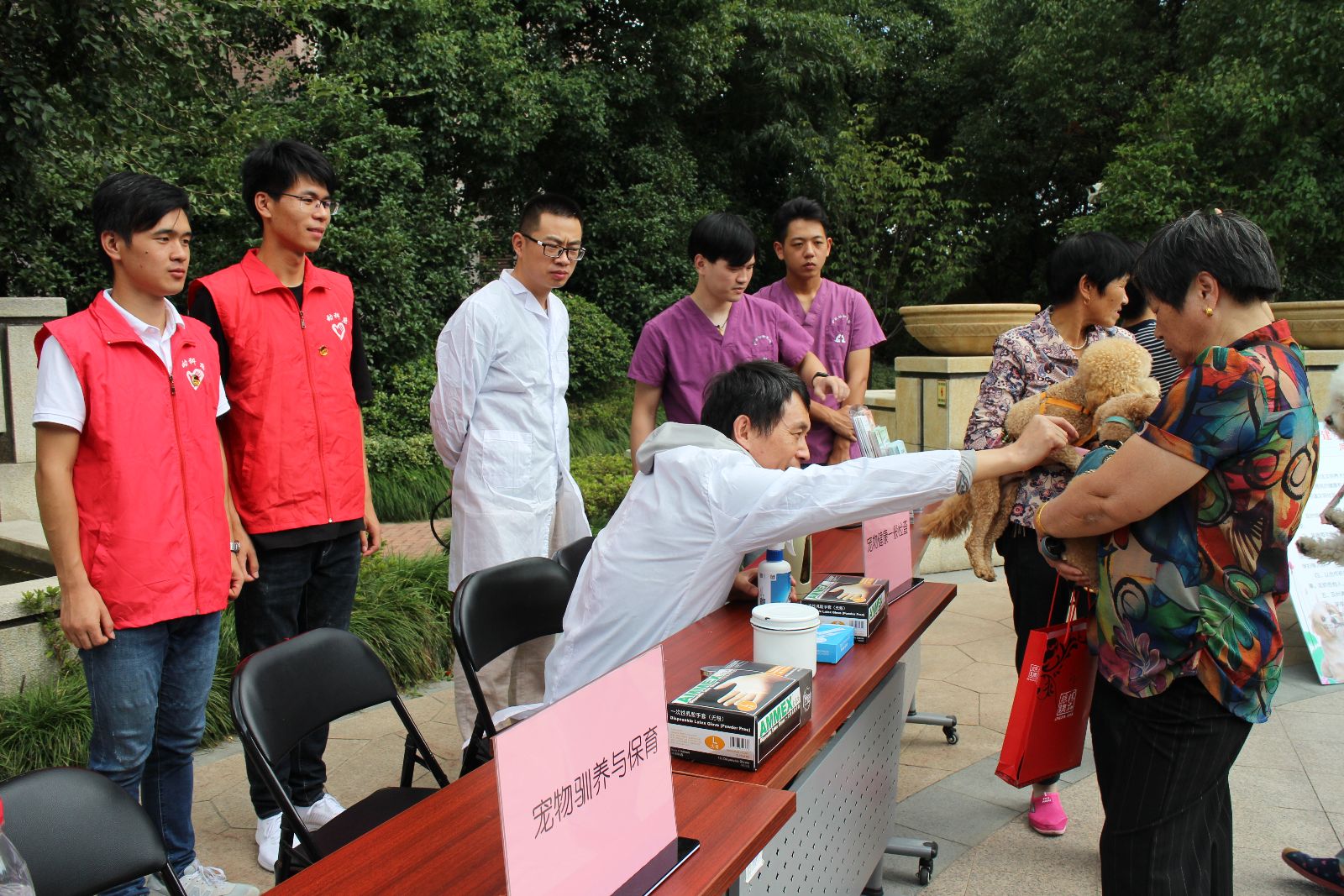 动物健康一般检查主要以动物医学教研室教师为主,为社区居民提供宠物驱虫、皮肤病、耳科等一般检查及免疫接种咨询类的服务,此项服务吸引了大批的社区居民携带宠物来咨询,以贵宾犬、金毛、边境牧羊犬等犬类咨询居多。宠物驯养与保育主要以动物科学教研室教师为主,为居民提供有关于宠物驯养、美容和保育方面的咨询,尤其是老年犬的护理。观赏鱼养殖与水族箱养护则由水产养殖教研室教师组成,结合真实的水族箱和观赏鱼为现场的居民展示观赏鱼的生活环境,并介绍其养护要点。居民们对老师们十分热情地讲解和专业水平给予了高度肯定,希望还能再来该社区服务。