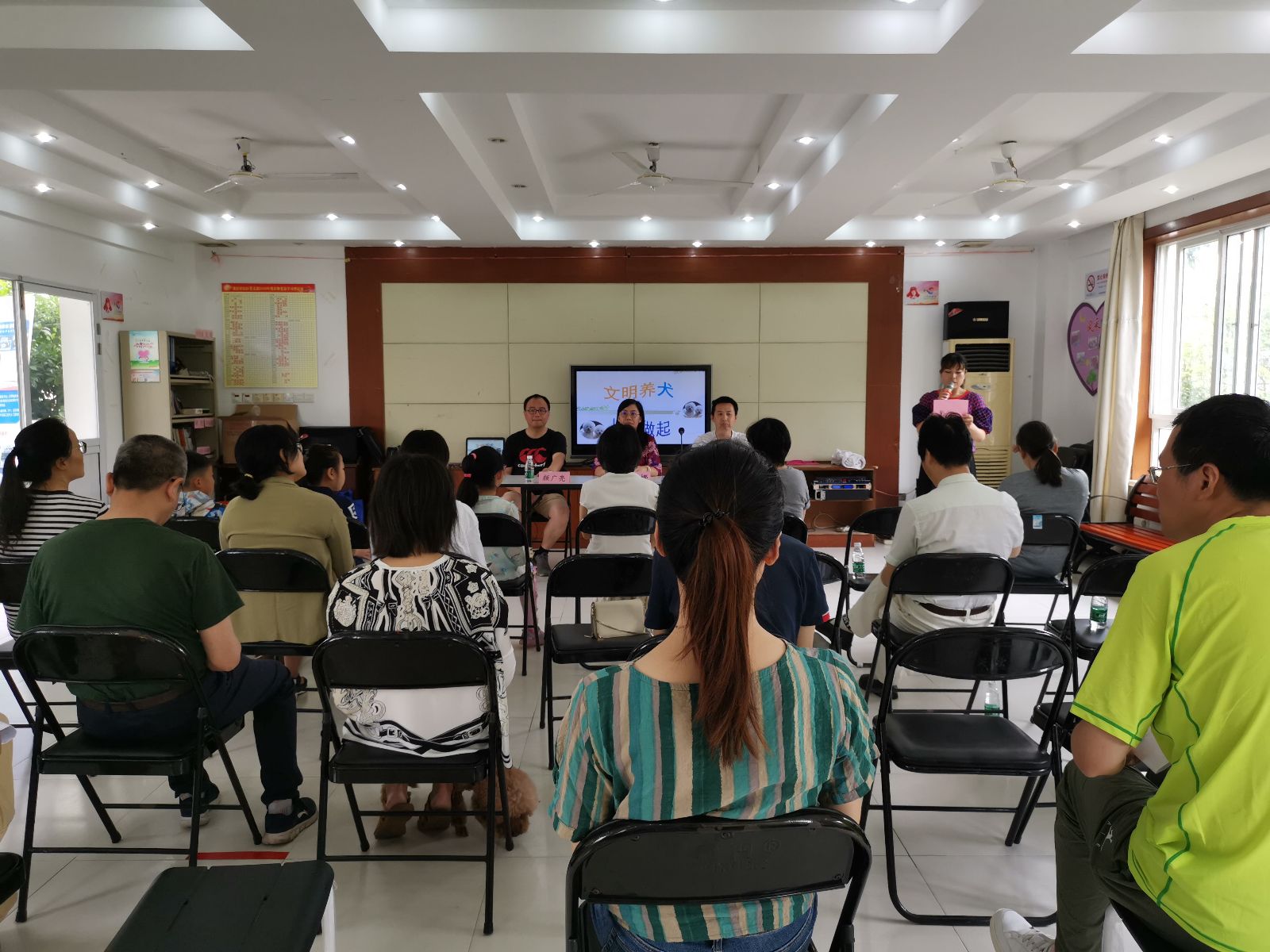 养犬知识公益讲座由动物科学技术系动医教研室主任、副教授王金福主讲。王老师提出文明养犬应做到四点:定期接种疫苗、外出牵引带、及时清理粪便、制止吠叫,号召居民文明养犬,维护社区环境。他指出夏季是各类宠物疾病的高发期,要注意预防,详细介绍了狂犬病、皮肤病、肠胃炎、中暑、感冒等夏季宠物疾病的表征、预防及治疗。社区不少养宠居民参加讲座,聚精会神学习养宠知识。