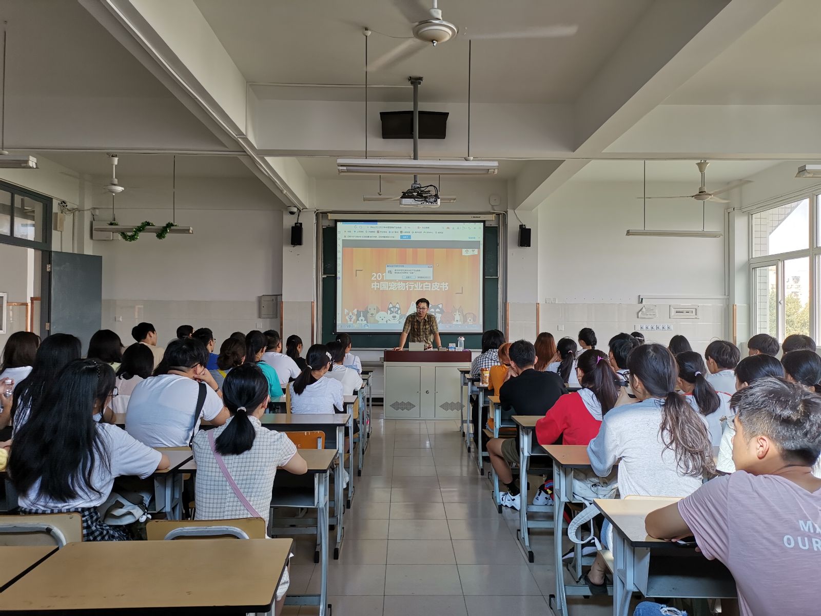 动物医学专业邀请上海交大宠物医院院长、上海畜牧兽医学会小动物医学分会理事长、中国兽医协会宠物医学分会副秘书长唐峰教授给新生做讲座。唐峰从厘清兽医、小动物临床兽医、执业兽医三个概念着手,通过讲解让2019级新生对动物医学专业有了一个较清晰的定位。他从分析宠物行业现状、小动物兽医专业的未来、小动物临床兽医的基本要求、小动物临床面临的问题四方面,为动医专业新生详细讲解了行业现状和行业要求,明确了专业学习方向。