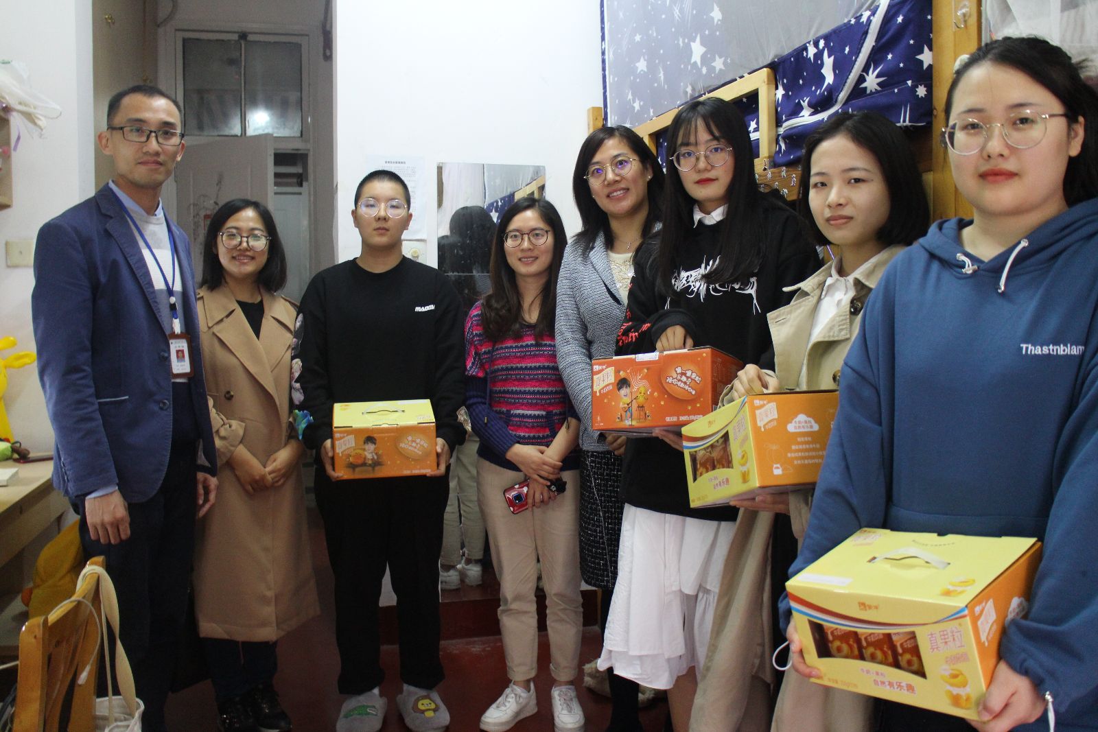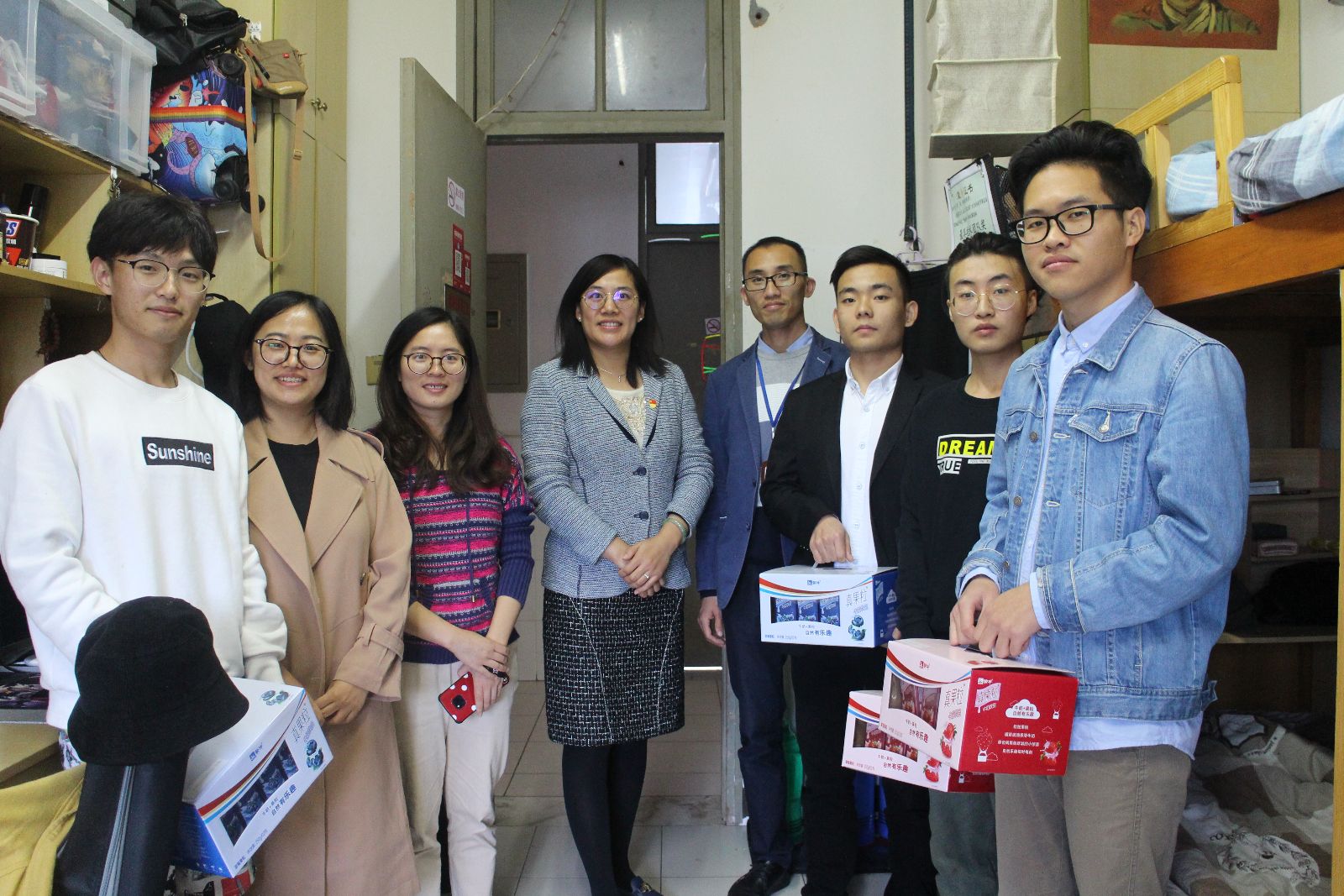 11月12日,动科系领导、工会组长、辅导员一行来到师生宿舍,看望并慰问了动科系无偿献血的师生。