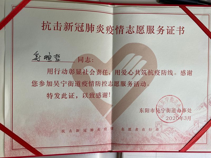我是19级动物医学专业的奚暄哲,我是参与到社区防控工作一线的大一新生,在提笔这篇文章时候,刚好是春分时节,此时我们浙江省已没有新增本地确诊病例了,我也结束了我的志愿者工作。