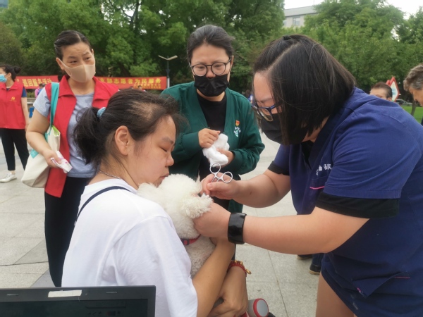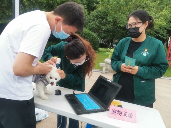 当天宠物义诊主要项目是耳道异物、耳炎等宠物耳道疾病的检查与治疗。不少社区居民带着宠物过来就诊,党员教师利用电子耳道内窥镜为宠物进行耳道检查,宠物主人通过电子成像第一时间直接观察到宠物耳道情况。病情轻微的现场第一时间进行治疗,病情较严重的,叮嘱宠物主人相关注意事项并建议尽早到宠物医院就诊。活动中,党员教师还向居民宣传宠物免疫、绝育、驱虫、宠物常见疾病等文明养犬知识。