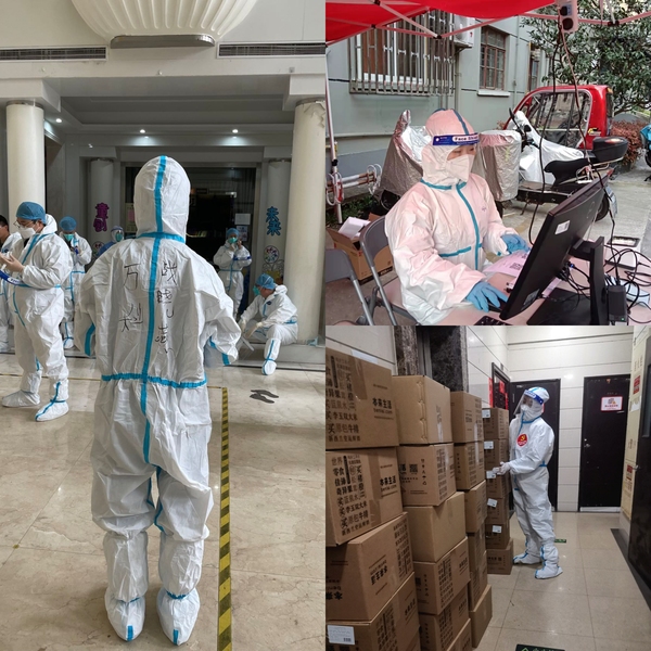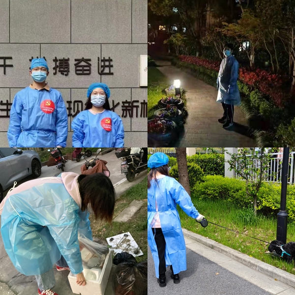 动科系党总支截至4月4日,除了留校坚守的5位党员教师,已有12人参与到社区抗疫一线工作中去,累计服务40余天。战晓燕、沈丽、钟登科、俞洁、王金福、祁真主要负责核酸检测和抗原检测辅助工作,包括摸排召集居民、秩序引导、扫码登记、样本收集分拣等等,其中沈丽、钟登科两位同志还要帮助独居老人完成抗原检测;夏灿、许巧、蔡明媚主动申请参与楼宇快递物资搬运和派发、垃圾收集和消杀工作;朱嘉晨、范鹏、马欣作为学生预备党员,也积极参与宿舍区物资搬运、分餐和社区大喇叭巡逻、劝阻居民等工作。大家在完成所负责工作的同时,都处于随时待命状态,哪里有需要,哪里就有他们的忙碌身影。