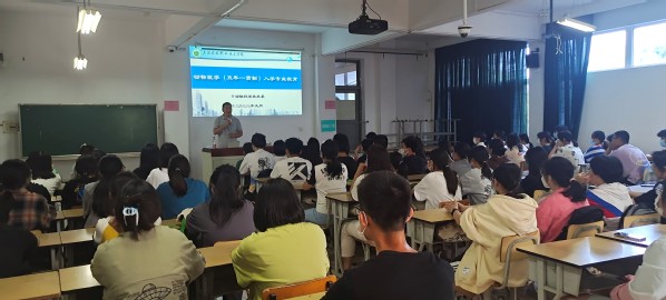 随后动物医学专业负责人钟登科就本专业的专业概况、教学资源、师资力量及专业建设方向等方面对新生进行讲解。