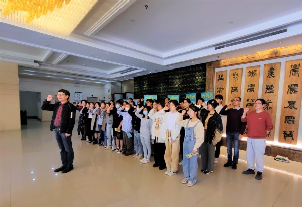 活动邀请在我院任教近40年,即将退休的孙维平老师讲话。孙维平带领大家重温了党的二十大报告中关于乡村振兴的重要内容,勉励青年师生能踏实肯干、知难而进,俯身于动医事业,为加快实现乡村全面振兴和农业农村现代化贡献自己的才智。随后,由孙维平领誓,在场的全体人员高举右拳、庄严肃立,共同宣读《兽医的誓言》。