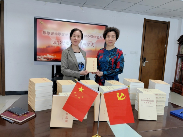 郑江平为两个支部发放《习近平著作选读》第一卷和第二卷、《习近平新时代中国特色社会主义思想专题摘编》,教师和学生党支部书记代表支部全体党员领取学习书籍。郑江平讲到,党的十八大以来,以习近平同志为主要代表的中国共产党人,坚持把马克思主义基本原理同中国具体实际相结合、同中华优秀传统文化相结合,科学回答了新时代坚持和发展什么样的中国特色社会主义、怎样坚持和发展中国特色社会主义等重大时代课题,创立了习近平新时代中国特色社会主义思想。习近平新时代中国特色社会主义思想是当代中国马克思主义、二十一世纪马克思主义,是中华文化和中国精神的时代精华,实现了马克思主义中国化时代化新的飞跃。2022年5月,党中央作出编辑出版《习近平著作选读》的重大决定。《习近平著作选读》第一卷、第二卷的出版发行,是党和国家政治生活中的一件大事,具有重大而深远的意义。而由中共中央党史和文献研究院、中央学习贯彻习近平新时代中国特色社会主义思想主题教育领导小组办公室联合编辑,中央文献出版社、党建读物出版社共同出版的《习近平新时代中国特色社会主义思想专题摘编》,则有助于切实把习近平新时代中国特色社会主义思想运用到贯彻落实党的二十大提出的重大战略部署中去,变成改造主观世界和客观世界的强大思想武器。希望党员们充分运用好党的二十大文件及学习辅导读物,精学深悟、学深悟透,在学习理论的基础上,深入开展调查研究,肩负起培养“一懂两爱”高质量人才,建设全国一流农林职业院校的责任和使命。