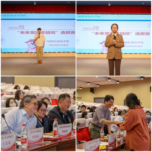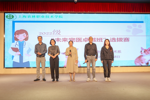 5月18日晚,动科系在综合楼205报告厅举行2022级“未来宠医卓越班”选拔赛,上海爱侣宠物医院、上海沪农动物医院、上海顽皮家族宠物医院、上海派菲尔德宠物医院、上海萌兽医馆、上海瑞鹏宠物医院等六家优秀企业的十位导师出席。学院院长陈立婧、教务处处长王欢、校企合作办主任吴辉兴、党委宣传部副部长司维、动科系主任滑志民出席,动科系专任教师及22级辅导员、21级学生代表、32名卓越班候选人、一百余名学生参加会议。会议由动科系教师李天顺主持。
