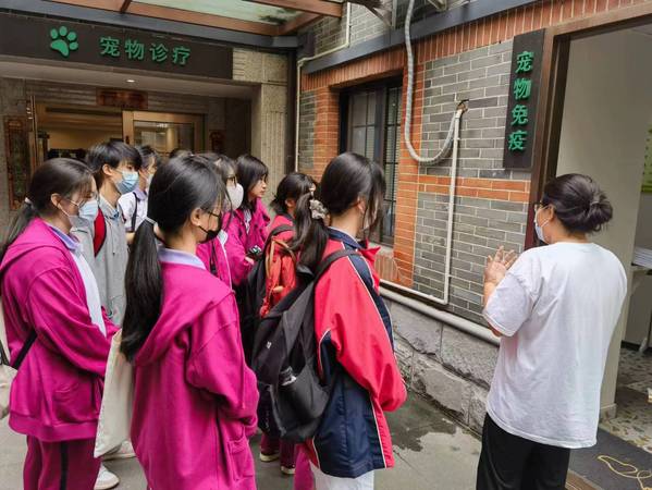 随后,一行人前往校办宠物医院实地参观交流。沈丽老师向参观人员简要介绍了宠物医院的基本布局功能、宠物诊疗流程和岗位要求等情况。