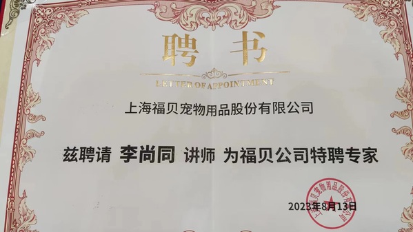 8月13日,动科系主任滑志民与教师李尚同正式受邀参加福贝宠物科研基地(宣城)开园仪式,期间数十名行业专家和百位知名宠食品牌代表参与,大家齐聚一堂,共同交流宠食研发的新成果。旨在为宠物行业的科研与创新工作提供指导与支持,共同推动宠物科研的发展。2位老师被福贝宠物公司聘为“特聘专家”。
