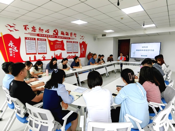 为加强思想政治与师德师风建设,弘扬尊师重教良好风尚,引导全体教师坚定理想信念,9月22日下午,在综合楼807会议室,动科系召开师德师风专题学习会,全体教职工参加。会议由动科系主任滑志民主持。