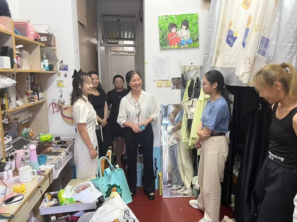 走访过程中,战晓燕对学生宿舍内的设施和环境进行了仔细观察,希望学生宿舍可以更加舒适、安全和便利,避免一些可能的安全隐患。她嘱咐同学们注意用电安全,保持室内环境整洁,并叮嘱同学们提高防范意识,加强防诈识骗的能力。同时,她还耐心地向在校生介绍了学习、生活和实践的机会,希望同学们能够提早规划人生,确定发展方向,更勉励大家树立远大理想和目标,不断进步充实自己,继续把高中的学习态度延展到大学,不要松懈。