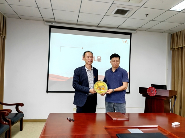 签约仪式后,袁聪俐向动科系教师党支部赠送纪念品。