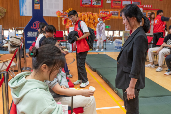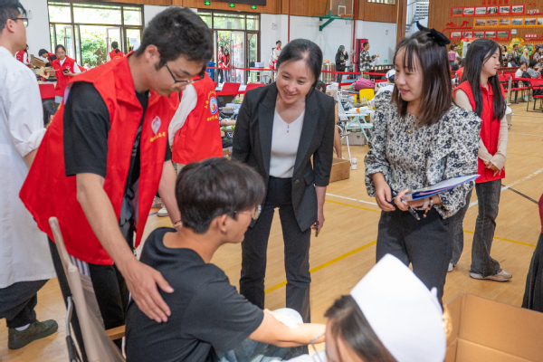 动科系副主任战晓燕及相关辅导员亲临献血现场,关怀慰问每一位参与献血的同学。战老师亲切地和献血学生进行交谈,一遍遍询问献血学生的情况和感受,叮嘱同学们注意休息和健康饮食,并对同学们的这种勇于奉献精神给予了高度肯定和赞扬。