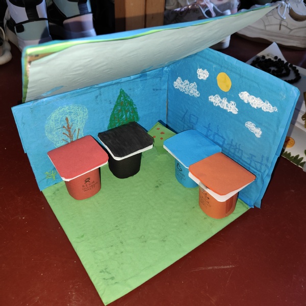 作品介绍:用废弃纸箱、废弃酸奶盒制作环保作品。既宣传环保,又创造了艺术,把我们拉入环保艺术的新视野中。当蔚蓝的天空,飘荡的白云被黑烟代替。我仿佛听见了森林的哭泣,白云的哀伤。地球是我们赖以生存的家园,环境需要我们好好的保护。植树造林可以美化环境,净化空气,包括我们的地球家园。我希望以此作品来呈现,让我们共同保卫我们的地球家园,让白云重新飘荡,让森林依旧绿波汹涌。