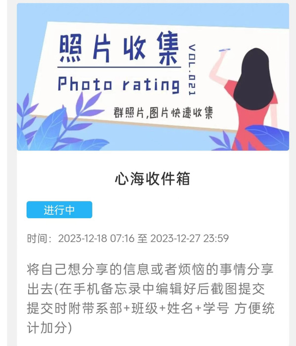 活动通过线下的“树洞倾听”和“解忧”收件箱,以及线上的“心海”收件箱等线上线下相结合方式同时进行,吸引了全院学生的积极参与。