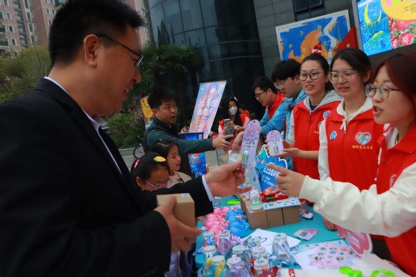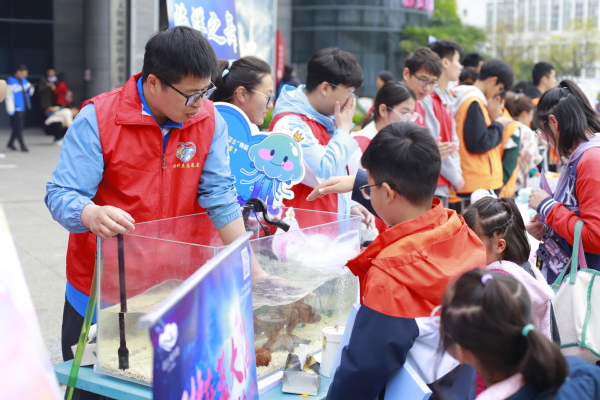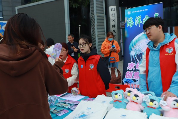 活动当天,动科系党员志愿者带领学生骨干积极参与由上海市闵行区莘庄镇人民政府、上海市闵行区自闭症志愿者协会主办的第十七届国际孤独症关注日爱心公益义卖。志愿者们在爱心义卖现场积极与自闭症儿童互动,向他们介绍海洋生物知识,吸引大批市民驻足了解。爱心义卖所筹善款全部捐给儿童自闭症志愿者协会,用于支持自闭症儿童的学习与生活。另外,志愿者们还参与服务于由孤独症儿童带来的“星宝星艺爱心音乐会”,通过轻松愉快的互动交流,鼓励自闭症儿童尝试走出自我,更多的接触人群,感受社会的温暖与支持,增强自信心和融入感。