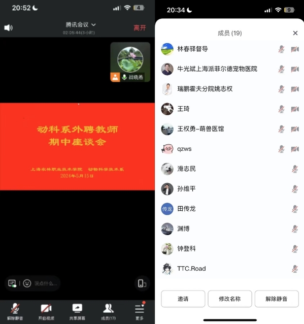 为深入了解外聘教师的教学情况,进一步提高专业教学质量,5月15日晚,动科系召开外聘教师线上期中座谈会。学院督导林春驿教授、动科系主任滑志民、副主任战晓燕、教研室主任及动科系本学期授课的全体外聘教师参加会议。会议由战晓燕主持。