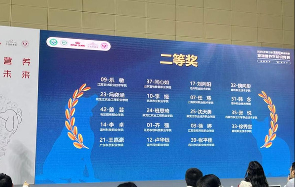 2024年5月30日,中国小动物技能大赛第三届“皇家杯”全国职业院校宠物营养学知识竞赛决赛在杭州举行。本届大赛由全国农业职业教育教学指导委员会指导,中国兽医学会、中国现代畜牧业产教融合共同体、中国现代畜牧业职教集团、全国宠物行业产教融合共同体、东西部小动物临床兽医师大会、皇家宠物食品主办。