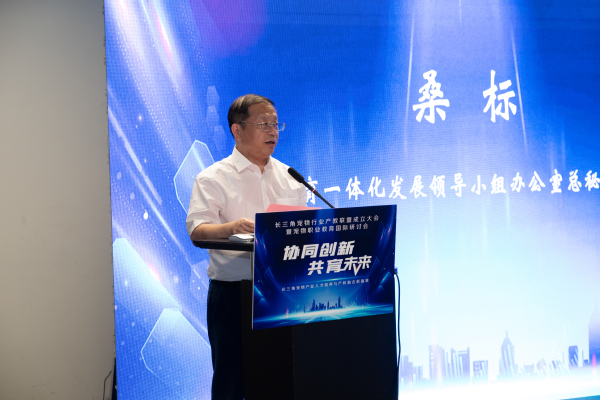 桑标指出,在新时代背景下,长三角一体化发展战略的实施,提供了前所未有的发展机遇,特别是在教育领域,通过深化产教融合、优化教育资源配置,能有效促进区域经济社会的全面发展。并提出了三点希望:一是搭建共享资源、协同创新新的平台;二是打造具有示范引领的创新机制;三是深化国际水平的产教融合、校企合作。
