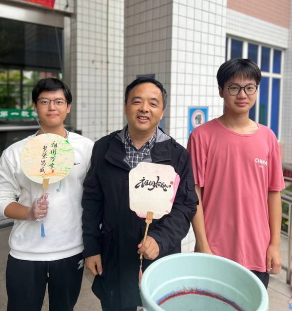 夕阳西下,一件件漆扇作品陈列在广场之上,这是学生们用心血和汗水浇灌出来的成果,是对祖国华诞的一份小小献礼,也是对自己青春岁月的一次美好记录。