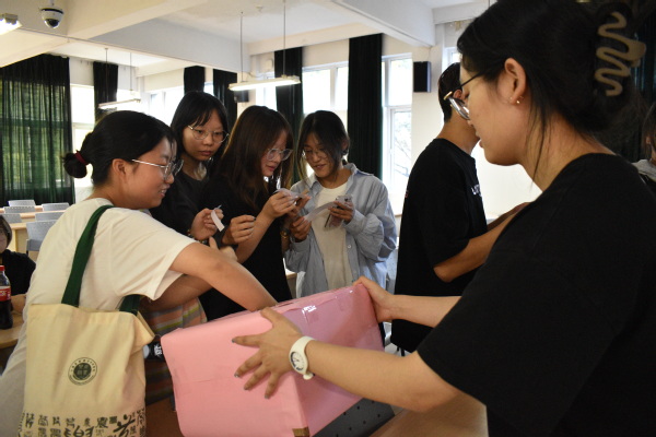 活动当天,孙凤冠首先对重阳节的起源、习俗以及其在中华文化中的重要地位进行了简要介绍,随后,活动进入了重阳节知识问答环节。在问答环节中,同学们需要先从预先准备好的题目箱中抽取一张题目卡,每张卡片上都写有一道与重阳节相关的趣味问题。参与者们认真思考后,纷纷给出了自己的答案。只要回答正确,即可获得由动科系精心准备的精美礼品一份,这些礼品既有实用性,又蕴含着节日的美好寓意。