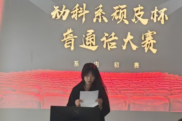 此次大赛邀请动科系团总支书记孙凤冠及四位去年在普通话大赛中表现优异的获奖选手担任评委。比赛吸引了动科系30余名同学的积极参与,大家纷纷上台,用标准的普通话歌颂祖国,展示青春风采。