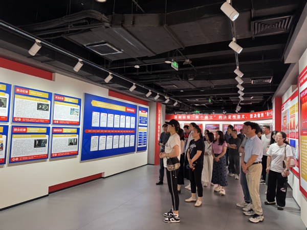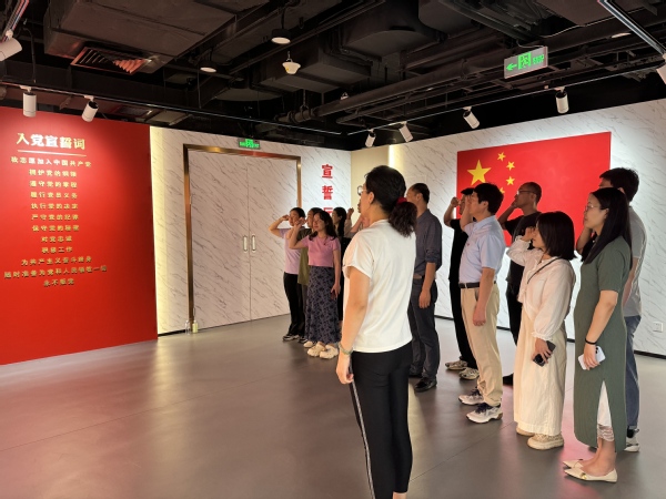参观结束后,党总支书记张海娜带领全体党员来到宣誓区域,举行了庄重的重温入党誓词仪式。面对鲜红的党旗,党员们整齐列队,高举右拳,神情庄重,铿锵有力的宣誓声在馆内回荡,展现了党员们对党的忠诚和对践行初心使命的坚定信念。