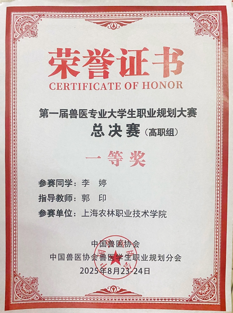 我院动科系宠物231学生李婷围绕个人成长经历及宠物职业生涯发展规划进行了现场汇报,凭借出色表现斩获一等奖。