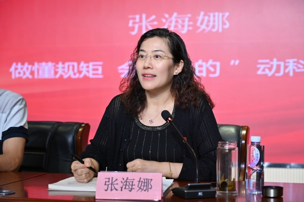紧接着,张海娜以“做懂规矩,会学习的动科人”为主题对新生进行了嘱托。张海娜从学生管理和成长成才的角度出发,细致阐述了大学三年学习和生活的规划要点。她表示,大学生不仅要遵守校纪校规,更要懂得为人处世的规矩。在学习上,她鼓励新生要变被动为主动,掌握科学的学习方法,积极参与实践,让未来的三年过得充实而有意义。