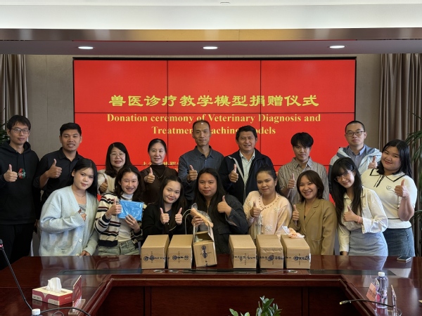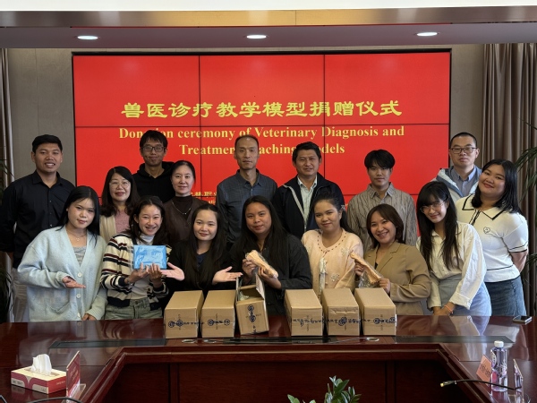 近日,在老挝国立大学兽医系11人访学团于动物科学技术系开展的15天访学交流活动中,动科系结合老挝动物医学教育教学发展实际需求,向访学团捐赠六套我院开发的宠物医疗教学模型,以实用教学资源为老挝动物医学领域人才培养注入助力。