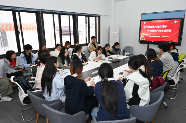 培训最后,程梦勤详细解读了青年讲师团选拔赛的选拔标准、赛程安排、宣讲内容要求及评分细则,针对宣讲稿撰写、课件制作、现场展示、情感表达等关键环节进行指导,明确了备赛时间节点与工作分工。同时,她鼓励全体学员充分利用一站式学生社区的场地资源,积极开展小组研讨、模拟宣讲、互评互改等备赛活动,确保赛事筹备工作有序高效推进,为学员们精准指明了备赛方向、提供了方法指导。