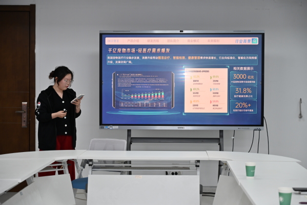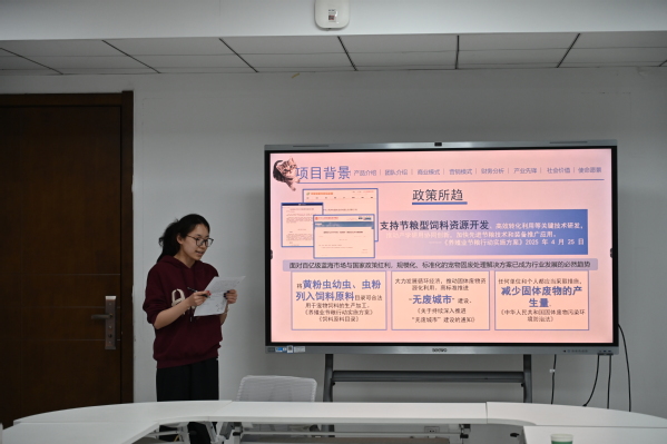 指导会上,12个项目团队依次进行项目汇报和路演展示,项目涵盖动物科学、智慧养殖、动物健康等多个专业方向。司忠业认真听取了每个项目的汇报,从选题价值、技术路径、市场定位、团队组建及商业计划书撰写等方面逐一剖析,结合自身指导高水平双创竞赛的丰富经验,指出了各项目当前存在的短板与优化方向。在互动交流环节,与会师生围绕项目选题优化、学科专业特色与双创项目的深度融合、低年级学生如何积累备赛经验等议题,与专家进行了深入探讨。
